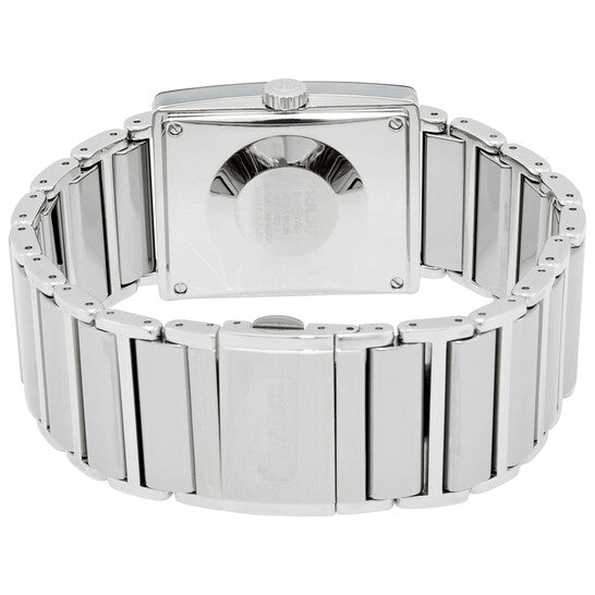 علبة من الفولاذ المقاوم للصدأ فضية اللون مع سوار فضي اللون. إطار ثابت. ميناء أسود مرصع بالألماس مع عقارب فضية اللون ومؤشرات ساعات بأرقام رومانية. نوع الميناء: تناظري. عرض التاريخ بين الساعة الرابعة والخامسة. حركة رادو كاليبر 580 (ETA 2681) أوتوماتيكية، مبنية على ETA 2681، تحتوي على 25 جوهرة، تنبض بمعدل 28800 ذبذبة في الساعة، ولديها احتياطي طاقة يدوم حوالي 38 ساعة. زجاج من الياقوت المقاوم للخدش. تاج قابل للسحب/الدفع. غطاء خلفي صلب. شكل العلبة مربع. حجم العلبة: 37 مم. عرض السوار: 24 مم. مقاومة للماء حتى عمق 30 مترًا / 100 قدم. الوظائف: التاريخ، الساعة، الدقيقة، الثانية. علامة الساعة: صناعة سويسرية. ساعة رادو إنتغرال جوبيلي أوتوماتيكية للرجال R20692712.
