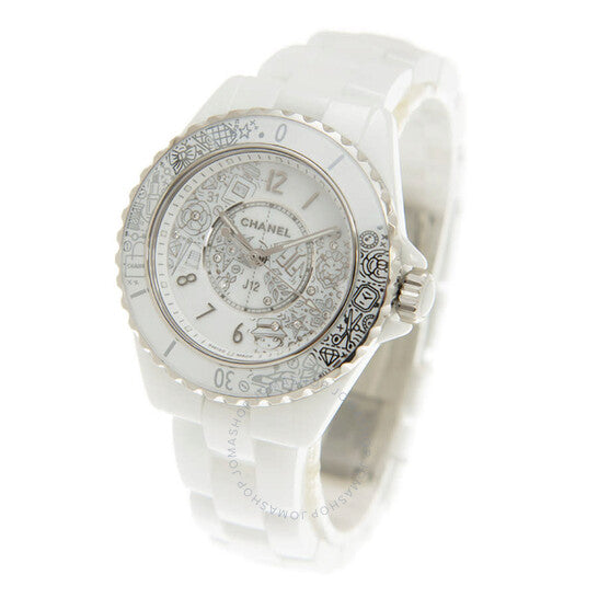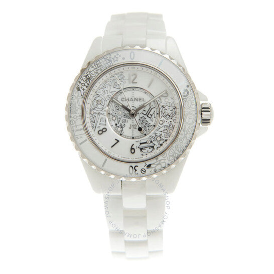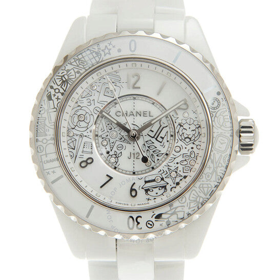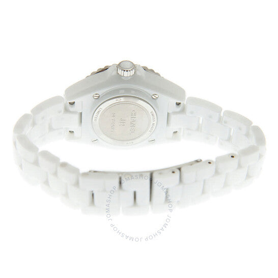 علبة وسوار من السيراميك الأبيض. إطار دوار أحادي الاتجاه من السيراميك. ميناء أبيض بعلامات ساعات عربية مرصعة بالألماس. نوع الميناء: تناظري. حركة كوارتز. زجاج ياقوت مقاوم للخدش. تاج لولبي. غطاء خلفي صلب. شكل دائري، مقاس العلبة: 33 مم. مشبك قابل للطي. مقاومة للماء حتى عمق 200 متر / 660 قدمًا. الوظائف: الساعات، الدقائق، الثواني. سلسلة J12-20. تصميم ساعة فاخرة. علامة الساعة: صناعة سويسرية. ساعة شانيل J12-20 كوارتز نسائية بمينا أبيض مرصعة بالألماس H6477.