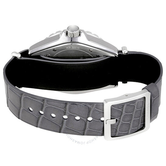 علبة من التيتانيوم مع سوار رمادي من جلد التمساح. إطار دوار أحادي الاتجاه من التيتانيوم مع حلقة علوية من السيراميك. ميناء رمادي اللون مع عقارب فضية اللون وعلامات ساعات بأرقام عربية. علامات دقائق حول الحافة الخارجية. نوع الميناء: تناظري. عقارب مضيئة. عرض التاريخ بين موضعي الساعة 4 و5. حركة أوتوماتيكية مع احتياطي طاقة لمدة 42 ساعة. تاج لولبي. غطاء خلفي صلب. حجم العلبة: 38 مم. شكل دائري. مشبك بإبزيم. مقاومة للماء حتى عمق 200 متر / 660 قدمًا. الوظائف: التاريخ، الساعة، الدقائق، الثواني. تصميم ساعة فاخرة. علامة الساعة: صناعة سويسرية. ساعة شانيل J12-G10 أوتوماتيكية للرجال H4187.