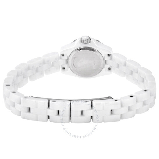 علبة من السيراميك الأبيض عالي التقنية والفولاذ المقاوم للصدأ، مع سوار من السيراميك الأبيض عالي التقنية والفولاذ المقاوم للصدأ. إطار ثابت من الفولاذ المقاوم للصدأ. ميناء أبيض بعقارب فضية اللون. نوع الميناء: تناظري. حركة كوارتز. زجاج من الياقوت المقاوم للخدش. تاج قابل للسحب والدفع. غطاء خلفي صلب. شكل دائري. حجم العلبة: ١٩ مم. مقاومة للماء حتى عمق ٣٠ مترًا / ١٠٠ قدم. الوظائف: الساعات، الدقائق. معلومات إضافية: ميناء مرصع بـ ٣٢ ماسة بقطع بريانت (~٠.٢٧ قيراط). طراز ساعة فاخرة. علامة الساعة: صناعة سويسرية. ساعة شانيل J12-XS نسائية بمينا أبيض من السيراميك H5237.