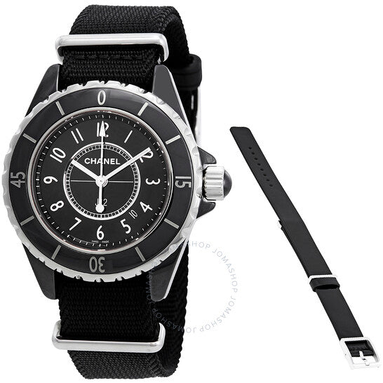علبة من السيراميك الأسود مع حزام من جلد العجل الأسود. إطار دوار أحادي الاتجاه من الفولاذ المقاوم للصدأ الأسود مع حلقة علوية من السيراميك الأسود. ميناء أسود بعقارب فضية مضيئة وعلامات ساعات عربية. علامات دقائق حول الحافة الخارجية. نوع الميناء: تناظري. عقارب وعلامات مضيئة. عرض التاريخ بين موضعي الساعة الرابعة والخامسة. آلية حركة كوارتز. زجاج ياقوت مقاوم للخدش. تاج لولبي. غطاء خلفي صلب. شكل دائري. حجم العلبة: ٣٣ مم. سمكها: ١٠ مم. مشبك تانغ. مقاومة للماء حتى عمق ٢٠٠ متر / ٦٦٠ قدمًا. الوظائف: التاريخ، الساعة، الدقائق، الثواني. تصميم كاجوال. علامة الساعة: صناعة سويسرية. ساعة شانيل J12 نسائية بمينا أسود H4657.
