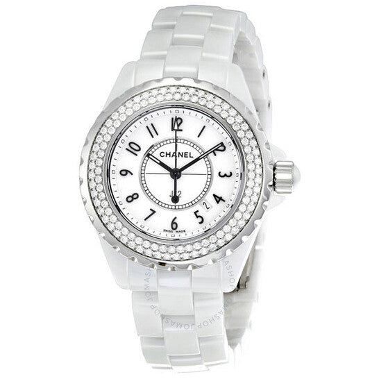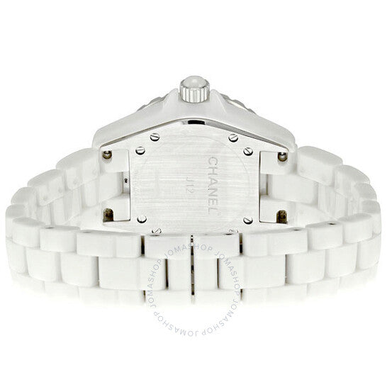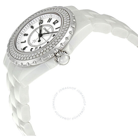 علبة من السيراميك الأبيض مع سوار من السيراميك. إطار من الألماس. ميناء أبيض بعقارب مضيئة وعلامات ساعات عربية. علامات دقائق حول الحافة الخارجية. عقارب مضيئة وعلامات ساعات. تاريخ أوتوماتيكي بين الساعة الرابعة والخامسة. حركة كوارتز. زجاج ياقوتي مقاوم للخدش. قطر العلبة: ٣٣ مم. مشبك مخفي. مقاومة للماء حتى عمق ٢٠٠ متر / ٦٦٠ قدمًا. الوظائف: الساعات، الدقائق، الثواني، التاريخ. ساعة شانيل J12 نسائية من السيراميك الأبيض الماسي H0967.
