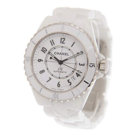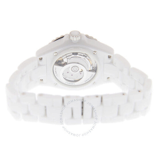 علبة وسوار من السيراميك الأبيض. إطار دوار أحادي الاتجاه من الفولاذ المقاوم للصدأ مع حلقة سيراميك بيضاء مرصعة. ميناء أبيض بعقارب سوداء مضيئة وعلامات ساعات عربية. علامات دقائق حول الحافة الخارجية. نوع الميناء: تناظري. عقارب وعلامات مضيئة. عرض التاريخ بين موضعي الساعة الرابعة والخامسة. حركة أوتوماتيكية من كينيس i/شانيل، عيار 12.1، تحتوي على 28 جوهرة، تنبض بمعدل 28800 ذبذبة في الساعة، ولديها احتياطي طاقة يصل إلى حوالي 70 ساعة. زجاج من الياقوت المقاوم للخدش. تاج لولبي. غطاء خلفي شفاف. شكل دائري. حجم العلبة: 38 مم. سمكها: 11 مم. مشبك مخفي قابل للطي. مقاومة للماء حتى عمق 200 متر / 660 قدمًا. الوظائف: التاريخ، الساعة، الدقيقة، الثانية. معلومات إضافية: العلبة الأصلية، بطاقة ضمان دولية، دليل (ملحقات كاملة). سلسلة J12. تصميم ساعة فاخرة. ملصق الساعة: صناعة سويسرية. ساعة شانيل J12 للسيدات بمينا أبيض H5700.
