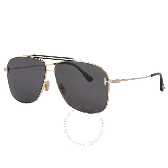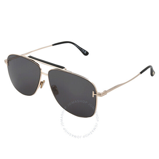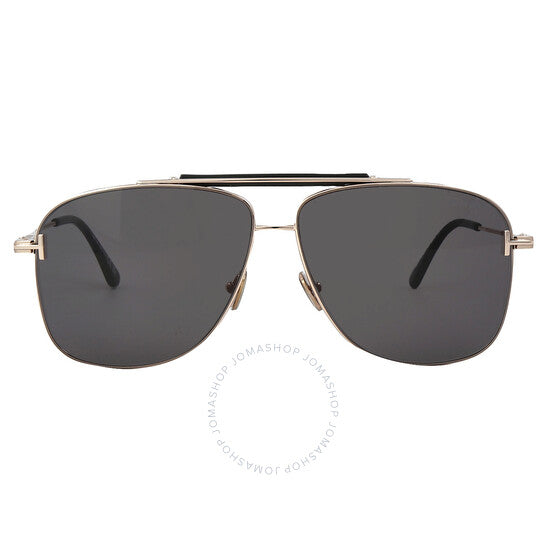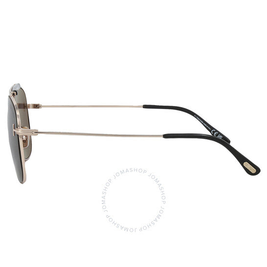 نظارات شمسية من توم فورد. سلسلة جادين. رقم السلسلة: FT1017. رمز اللون: 28A. الشكل: نافيجيتور. عرض العدسة: 60 مم. جسر العدسة: 12 مم. طول الذراع: 145 مم. حماية 100% من الأشعة فوق البنفسجية. غير مستقطبة. مادة الإطار: معدن. لون الإطار: ذهبي وردي لامع. نوع العدسات: دخاني. نمط الحافة: حافة كاملة. رمز UPC/EAN: 889214402493. نظارات شمسية توم فورد جادين سموكي نافيجيتور للرجال FT1017 28A 60.