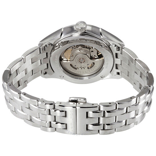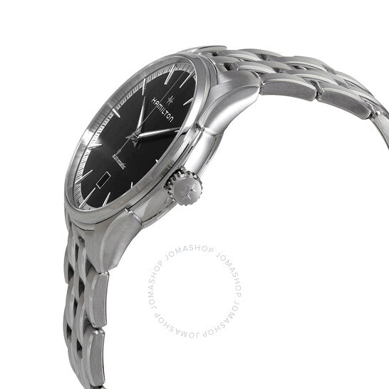علبة من الفولاذ المقاوم للصدأ مع سوار من الفولاذ المقاوم للصدأ. إطار ثابت من الفولاذ المقاوم للصدأ. ميناء أسود مع عقارب ومؤشرات ساعات فضية مضيئة. مؤشرات دقائق حول الحافة الخارجية. نوع الميناء: تناظري. عقارب ومؤشرات مضيئة. عرض التاريخ فوق موضع الساعة السادسة. حركة أوتوماتيكية من عيار H-10 مع احتياطي طاقة يصل إلى 80 ساعة. زجاج من الياقوت المقاوم للخدش. تاج قابل للسحب/الدفع. غطاء خلفي شفاف. شكل دائري. حجم العلبة: 40 مم. سمكها: 11.05 مم. عرض السوار: 20 مم. مشبك قابل للطي مع مفتاح أمان. مقاومة للماء حتى عمق 50 مترًا / 165 قدمًا. الوظائف: التاريخ، الساعة، الدقيقة، الثانية. سلسلة جازماستر. تصميم ساعة كاجوال. علامة الساعة: صناعة سويسرية. ساعة هاميلتون جازماستر أوتوماتيكية للرجال بمينا أسود H32475130.