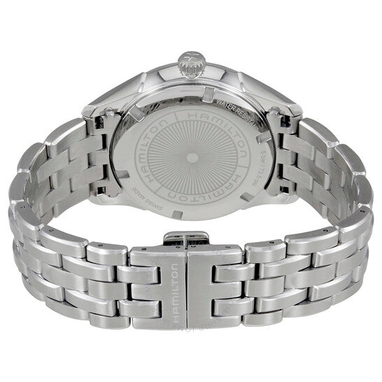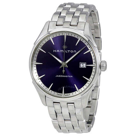 علبة وسوار من الفولاذ المقاوم للصدأ فضي اللون. إطار ثابت من الفولاذ المقاوم للصدأ فضي اللون. ميناء أزرق مع عقارب وعلامات ساعات فضية مضيئة. علامات دقائق حول الحافة الخارجية. نوع الميناء: تناظري. عقارب وعلامات مضيئة. عرض التاريخ عند موضع الساعة 3. حركة كوارتز ETA Caliber F06.111. كريستال ياقوت مقاوم للخدش. تاج قابل للسحب/الدفع. غطاء خلفي صلب. شكل دائري، مقاس العلبة: 40 مم، سمكها: 10.2 مم. عرض السوار: 20 مم. مشبك قابل للطي. مقاومة للماء حتى عمق 50 مترًا / 165 قدمًا. الوظائف: التاريخ، الساعة، الدقائق، الثواني. سلسلة Jazzmaster. تصميم ساعة كاجوال. علامة الساعة: صناعة سويسرية. ساعة هاميلتون Jazzmaster للرجال بمينا أزرق H32451141.