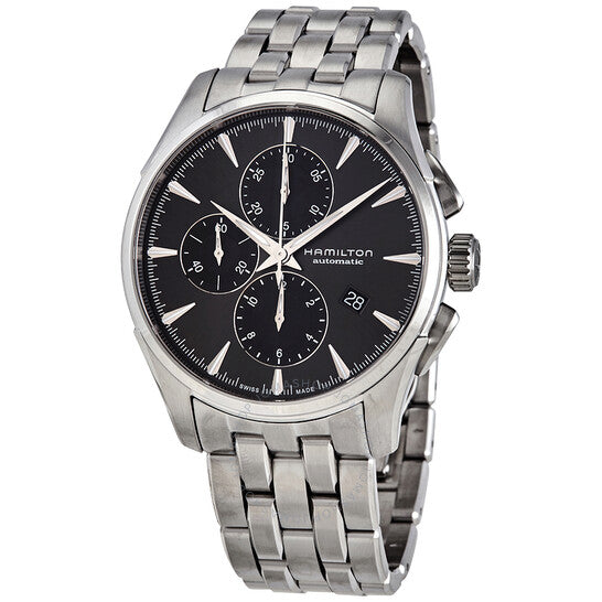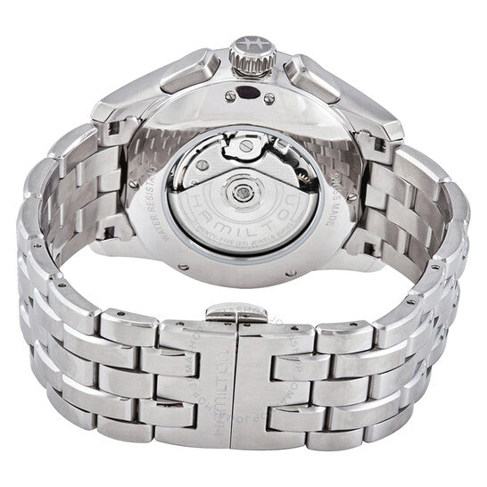 علبة فضية اللون من الفولاذ المقاوم للصدأ مع سوار فضي اللون من الفولاذ المقاوم للصدأ. إطار ثابت فضي اللون من الفولاذ المقاوم للصدأ. ميناء أسود مع عقارب فضية اللون مضيئة على شكل دوفين وعلامات ساعات. نوع الميناء: تناظري. عقارب وعلامات مضيئة. عرض التاريخ عند موضع الساعة الرابعة. كرونوغراف - ثلاثة أقراص فرعية تعرض: ٦٠ ثانية، ٣٠ دقيقة، و١٢ ساعة. حركة هاميلتون كاليبر H-21 أوتوماتيكية، مبنية على ETA 7750، تحتوي على ٢٥ جوهرة، تنبض بمعدل ٢٨٨٠٠ ذبذبة في الساعة، ولديها احتياطي طاقة لمدة ٦٠ ساعة تقريبًا. زجاج ياقوت مقاوم للخدش. غطاء خلفي شفاف. شكل دائري، حجم العلبة: ٤٢ مم، سمكها: ١٥.٢٣ مم. عرض السوار: ٢٢ مم. مشبك فراشة. مقاومة للماء حتى عمق ١٠٠ متر / ٣٣٠ قدمًا. الوظائف: كرونوغراف، تاريخ، ساعة، دقيقة، ثانية. سلسلة Jazzmaster. ساعة كاجوال. علامة الساعة: صناعة سويسرية. ساعة هاميلتون جازماستر كرونوغراف أوتوماتيكية بمينا سوداء للرجال، طراز H32586181.