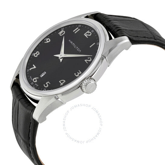 علبة من الفولاذ المقاوم للصدأ مع سوار جلدي أسود. إطار ثابت من الفولاذ المقاوم للصدأ. ميناء أسود بعقارب فضية مضيئة وعلامات ساعات بأرقام عربية. علامات دقائق حول الحافة الخارجية. نوع الميناء: تناظري. عقارب مضيئة. عرض التاريخ عند موضع الساعة السادسة. حركة كوارتز عيار F06.111. زجاج ياقوت مقاوم للخدش. تاج لولبي. غطاء خلفي صلب. حجم العلبة: 42 مم. سمكها: 8 مم. شكلها دائري. عرض السوار: 22 مم. مشبك تانغ. مقاومة للماء حتى عمق 50 مترًا / 165 قدمًا. الوظائف: التاريخ، الساعات، الدقائق، مؤشر عمر البطارية. طراز ساعة رسمية. علامة الساعة: صناعة سويسرية. ساعة هاميلتون جازماستر ثينلاين للرجال بمينا أسود H38511733.