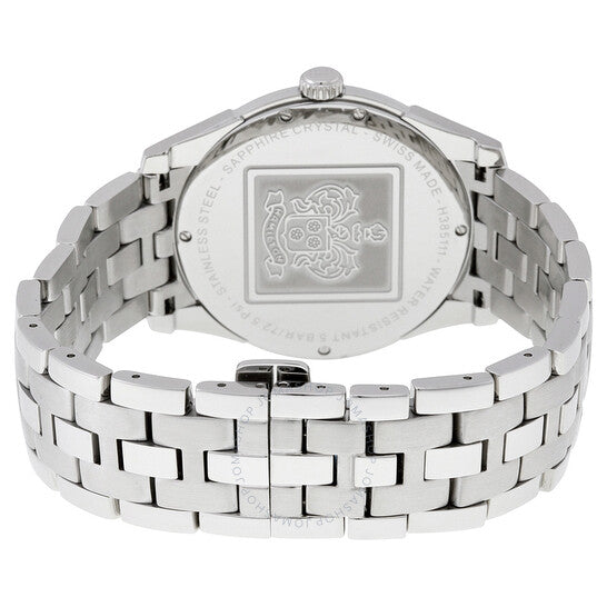 علبة من الفولاذ المقاوم للصدأ مع سوار من الفولاذ المقاوم للصدأ. إطار ثابت من الفولاذ المقاوم للصدأ. ميناء أزرق مع عقارب فضية مضيئة وعلامات ساعات بأرقام عربية. علامات دقائق بأرقام عربية (بفاصل ٥ دقائق). علامات دقائق حول الحافة الخارجية. نوع الميناء: تناظري. عقارب وعلامات مضيئة. عرض التاريخ عند موضع الساعة السادسة. حركة كوارتز. زجاج ياقوت مقاوم للخدش. تاج قابل للسحب/الدفع. غطاء خلفي صلب. قطر العلبة: ٤٢ مم. سُمكها: ٧ مم. شكلها دائري. عرض السوار: ٢٢ مم. مشبك قابل للطي مع مفتاح أمان. مقاومة للماء حتى عمق ٥٠ مترًا / ١٦٥ قدمًا. الوظائف: التاريخ، الساعة، الدقيقة، الثانية. طراز ساعة رسمية. علامة الساعة: صناعة سويسرية. ساعة هاميلتون جازماستر ثينلاين للرجال بمينا أزرق من الفولاذ المقاوم للصدأ، طراز H38511143.
