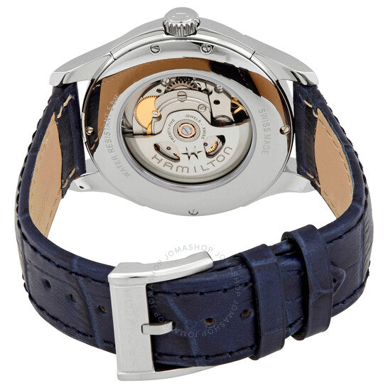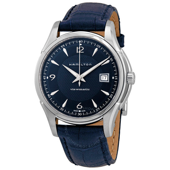 علبة من الفولاذ المقاوم للصدأ مع سوار من جلد العجل الأزرق. إطار ثابت من الفولاذ المقاوم للصدأ. ميناء أزرق مع عقارب ومؤشرات ساعات فضية مضيئة. أرقام عربية تُشير إلى الساعات 6 و9 و12. علامات دقائق حول الحافة الخارجية. نوع الميناء: تناظري. عقارب ومؤشرات مضيئة. عرض التاريخ عند الساعة 3. حركة أوتوماتيكية من عيار هاميلتون H-10، مبنية على ETA C07.111، تحتوي على 25 جوهرة، تنبض بمعدل 21600 ذبذبة في الساعة، ولديها احتياطي طاقة يصل إلى 80 ساعة تقريبًا. زجاج ياقوت مقاوم للخدش. تاج قابل للسحب/الدفع. غطاء خلفي شفاف. شكل دائري. حجم العلبة: 40 مم. سمك العلبة: 10.8 مم. عرض السوار: 18 مم. مشبك تانغ. مقاومة للماء حتى عمق 50 مترًا / 165 قدمًا. الوظائف: التاريخ، الساعة، الدقائق، الثواني. سلسلة Jazzmaster Viewmatic. تصميم كاجوال أنيق. علامة الساعة: صناعة سويسرية. ساعة هاميلتون جازماستر فيوماتيك أوتوماتيكية للرجال بمينا أزرق H32515641.