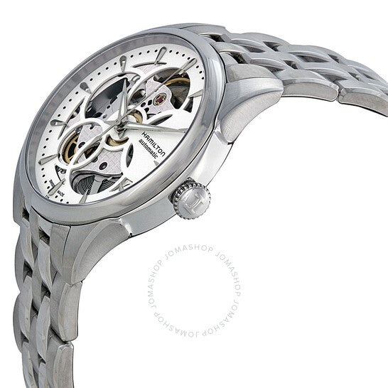 علبة من الفولاذ المقاوم للصدأ مع سوار من الفولاذ المقاوم للصدأ. إطار ثابت من الفولاذ المقاوم للصدأ. ميناء أبيض هيكلي بعقارب فضية اللون وعلامات ساعات. علامات دقائق حول الحافة الخارجية. نوع الميناء: تناظري. حركة أوتوماتيكية باحتياطي طاقة لمدة 42 ساعة. زجاج من الياقوت المقاوم للخدش. تاج قابل للسحب/الدفع. ظهر هيكلي. قطر العلبة: 36 مم. سمكها: 12.32 مم. شكلها دائري. عرض السوار: 18 مم. مشبك قابل للطي. مقاومة للماء حتى عمق 50 مترًا / 165 قدمًا. الوظائف: الساعات، الدقائق، الثواني. طراز ساعة رسمية. علامة الساعة: صناعة سويسرية. ساعة هاميلتون جازماستر فيوماتيك أوتوماتيكية بمينا هيكلي وفولاذ مقاوم للصدأ للسيدات H32405111.