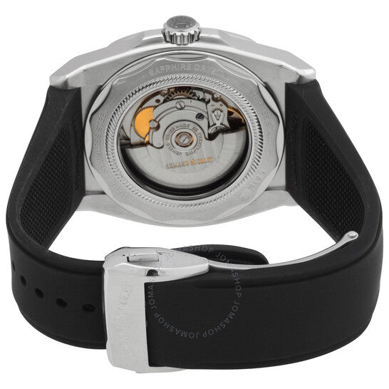 علبة من الفولاذ المقاوم للصدأ مع سوار مطاطي أسود. إطار ثابت من الفولاذ المقاوم للصدأ. ميناء أسود مع عقارب وعلامات ساعات فضية اللون. تظهر الأرقام العربية عند الساعة 3 و9 و12. علامات دقائق عربية زرقاء (بفاصل 5 دقائق). علامات دقائق حول الحافة الخارجية. نوع الميناء: تناظري. عقارب وعلامات مضيئة. عرض التاريخ عند الساعة 6. حركة أوتوماتيكية ETA Caliber 2824-2، مبنية على ETA 2824، تحتوي على 25 جوهرة، تنبض بمعدل 28800 ذبذبة في الساعة، ولديها احتياطي طاقة لمدة 38 ساعة تقريبًا. زجاج ياقوت مقاوم للخدش. غطاء خلفي شفاف. شكل دائري. حجم العلبة: 41 مم. سمك العلبة: 12.5 مم. مشبك قابل للطي. مقاومة للماء حتى عمق 50 مترًا / 165 قدمًا. الوظائف: التاريخ، الساعة، الدقيقة، الثانية. سلسلة Jh9. طراز ساعة رسمية. علامة الساعة: ساعة سويسرية أوتوماتيكية من أرماند نيكوليه JH9 للرجال، بمينا أسود، A660HAA-NZ-GG4710N.