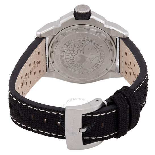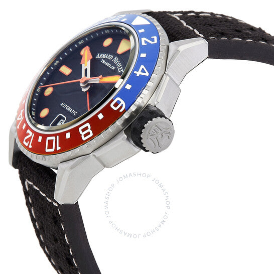 علبة من الفولاذ المقاوم للصدأ فضية اللون مع سوار من القماش الأسود. إطار دوار من السيراميك الأزرق والبرتقالي. ميناء أسود بعقارب وعلامات ساعات فضية اللون. علامات دقائق حول الحافة الخارجية. نوع الميناء: تناظري. عقارب وعلامات مضيئة. عرض التاريخ عند موضع الساعة السادسة. حركة أوتوماتيكية من سيليتا كاليبر SW330، تحتوي على 25 جوهرة، تنبض بمعدل 28800 ذبذبة في الساعة، ولديها احتياطي طاقة يدوم حوالي 42 ساعة. زجاج من الياقوت المقاوم للخدش. غطاء خلفي صلب. شكل دائري، حجم العلبة: 41 مم. مشبك تانغ. مقاومة للماء حتى عمق 300 متر / 1000 قدم. الوظائف: التاريخ، توقيت غرينتش، المنطقة الزمنية الثانية، الساعات، الدقائق، الثواني. سلسلة JSH. اسم الساعة: صناعة سويسرية. ساعة أرماند نيكوليه JSH GMT أوتوماتيكية بمينا أسود للرجال A487RGN-NO-P0640NC8.