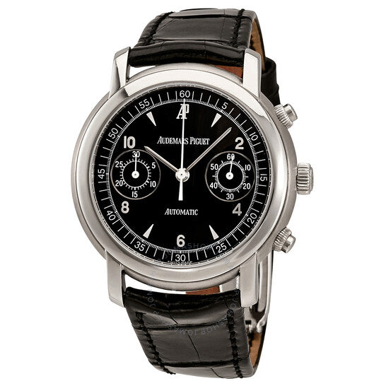 علبة من الفولاذ المقاوم للصدأ مع سوار أسود من جلد التمساح. إطار ثابت من الفولاذ المقاوم للصدأ. ميناء أسود بعقارب فضية اللون ومؤشرات ساعات متناوبة وأرقام عربية. علامات دقائق حول الحافة الخارجية. نوع الميناء: تناظري. كرونوغراف - ميناءان فرعيان يعرضان: 60 ثانية و30 دقيقة. حركة أوتوماتيكية عيار AP 2226/2841 مع احتياطي طاقة 38 ساعة. زجاج ياقوت مقاوم للخدش. تاج قابل للسحب/الدفع. غطاء خلفي صلب. حجم العلبة: 39 مم. سمكها: 11 مم. شكلها دائري. مشبك قابل للطي بزر ضغط. مقاومة للماء حتى عمق 20 مترًا / 65 قدمًا. الوظائف: كرونوغراف، ساعات، دقائق، ثوانٍ. تصميم ساعة فاخرة. علامة الساعة: صناعة سويسرية. إصدارات المنتج: 25859ST OO D001CR 02، 25859ST-OO-D001CR-02، 25859STOOD001CR02. ساعة أوديمار بيجيه جول أوديمار كرونوغراف أوتوماتيكية للرجال 25859ST.OO.D001CR.02.