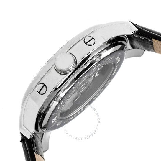 علبة من الفولاذ المقاوم للصدأ مع سوار جلدي أسود. إطار ثابت من الفولاذ المقاوم للصدأ. ميناء فضي (هيكلي مركزي) بعقارب فضية مضيئة وعلامات ساعات رومانية. علامات دقائق عربية (بفاصل ٥ دقائق). علامات دقائق حول الحافة الخارجية. نوع الميناء: تناظري. عقارب مضيئة. حركة أوتوماتيكية باحتياطي طاقة ٤٢ ساعة. زجاج معدني مقاوم للخدش. تاج قابل للسحب/الدفع. غطاء خلفي شفاف. شكل دائري. حجم العلبة: ٤٥ مم. سمكها: ١٢ مم. عرض السوار: ٢٢ مم. مشبك تانغ. مقاومة للماء حتى عمق ٥٠ مترًا / ١٦٥ قدمًا. الوظائف: الساعات، الدقائق، الثواني. سلسلة خان. تصميم ساعة كاجوال. إصدارات متنوعة: REIRN4303. ساعة رين خان الأوتوماتيكية للرجال بمينا فضي REIRN4303.