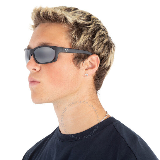 نظارات شمسية من ماوي جيم. سلسلة كانايو كوست. رقم السلسلة: 766. رمز اللون: 02MD. الشكل: مستطيل. عرض العدسة: 61 مم. جسر العدسة: 17 مم. طول الذراع: 127 مم. حماية 100% من الأشعة فوق البنفسجية. مستقطبة. مادة الإطار: أسيتات. لون الإطار: أسود ناعم مطفي مع أبيض وأزرق. نوع العدسات: رمادي محايد. نمط الحافة: حافة كاملة. رمز UPC/EAN: 603429050092. نظارات شمسية ماوي جيم كانايو كوست رمادي محايد مستطيلة للرجال، 766-02MD 61.