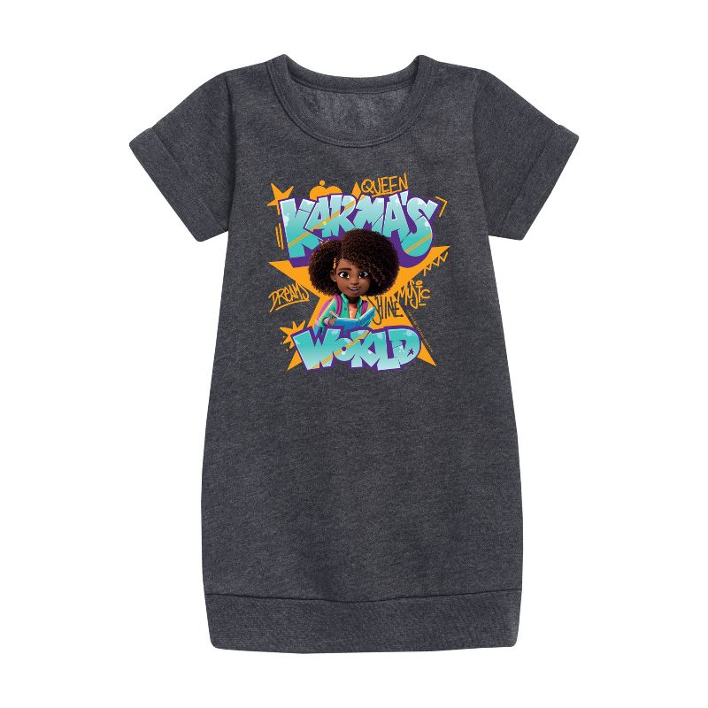 عالم كارما - فن الجرافيتي - فستان صوف للفتيات الصغيرات والشابات - انطلقي في رحلة التعبير عن الذات والثقة مع ملابس جرافيكية مستوحاة من عالم كارما. تتميز كل قطعة بتصاميم نابضة بالحياة، ورسائل مُلهمة، وشخصيات من المسلسل الشهير، وتحتفل بالإبداع والتفرد وقوة الكلمات. مثالية لعشاق كارما وموسيقاها، تضفي هذه المجموعة لمسة من الإيجابية والأناقة على كل إطلالة ولحظة.