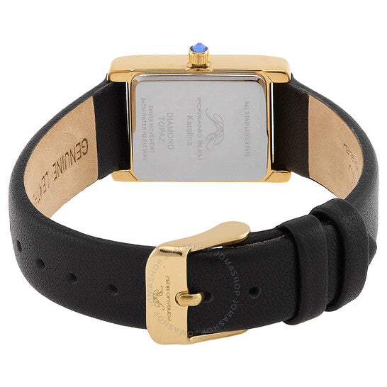 ساعة بورسامو بلو كارولينا الماسية النسائية المستطيلة، بإطار من التوباز وعلامات ساعات من الماس؛ هيكل من الفولاذ المقاوم للصدأ وسوار من الجلد الأصلي، لون ذهبي وأسود. هيكل من الفولاذ المقاوم للصدأ بلون ذهبي أصفر وسوار من الجلد الأسود. إطار دوار أحادي الاتجاه من الفولاذ المقاوم للصدأ بلون ذهبي أصفر. ميناء أبيض مع عقارب وعلامات ساعات ذهبية صفراء. مقياس دقائق حول الحافة الداخلية. نوع الميناء: تناظري. عقارب وعلامات مضيئة. حركة كوارتز روندا كاليبر 762. زجاج معدني مقاوم للخدش. تاج قابل للسحب/الدفع. غطاء خلفي صلب. هيكل مستطيل الشكل، مقاس الهيكل: 21.5 مم، سمك الهيكل: 8 مم. عرض السوار: 16 مم، طول السوار: 7 بوصات. مشبك بإبزيم. مقاومة للماء حتى عمق 30 مترًا / 100 قدم. الوظائف: الساعة، الدقائق. معلومات إضافية: إطار من التوباز وعلامات ساعات من الماس. سلسلة كارولينا. طراز ساعة فاخرة. علامة الساعة: صناعة سويسرية. ساعة بورسامو بلو كارولينا كوارتز بمينا أبيض للسيدات 1084AKAL.