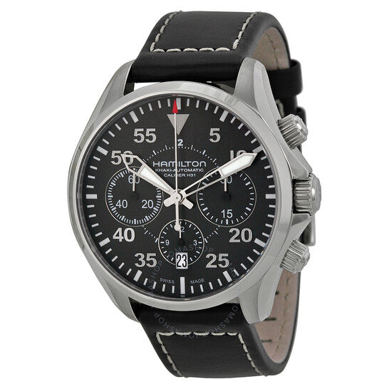 علبة من الفولاذ المقاوم للصدأ فضية اللون مع سوار جلدي أسود. إطار ثابت من الفولاذ المقاوم للصدأ فضي اللون. ميناء أسود بعقارب فضية اللون وعلامات ساعات بأرقام عربية. علامات دقائق حول الحافة الخارجية. نوع الميناء: تناظري. عقارب وعلامات مضيئة. عرض التاريخ عند موضع الساعة السادسة. كرونوغراف - ثلاثة أقراص فرعية تعرض: ٦٠ ثانية، ٣٠ دقيقة، و١/١٠ من الثانية. حركة هاميلتون كاليبر H-31 أوتوماتيكية، مبنية على ETA 7753، تحتوي على ٢٧ جوهرة، تنبض بتردد ٢٨٨٠٠ ذبذبة في الساعة، ولديها احتياطي طاقة لمدة ٦٠ ساعة تقريبًا. زجاج ياقوت مقاوم للخدش. تاج لولبي. غطاء خلفي شفاف. شكل دائري، حجم العلبة: ٤٢ مم، سمكها: ١٦ مم. عرض السوار: ٢٠ مم، طوله: ٧ بوصات. مشبك تانغ. مقاومة للماء حتى عمق ٥٠ مترًا / ١٦٥ قدمًا. الوظائف: كرونوغراف، تاريخ، ساعات، دقائق، ثوانٍ. سلسلة كاكي للطيران. طراز ساعة الطيار. علامة الساعة: صناعة سويسرية. ساعة هاميلتون كاكي للطيران، طراز H64666735.