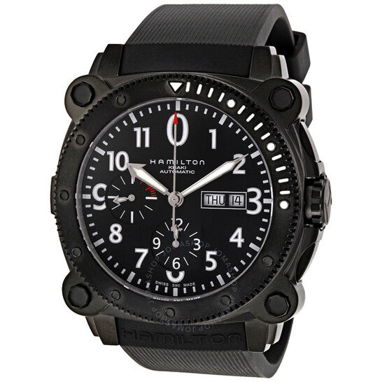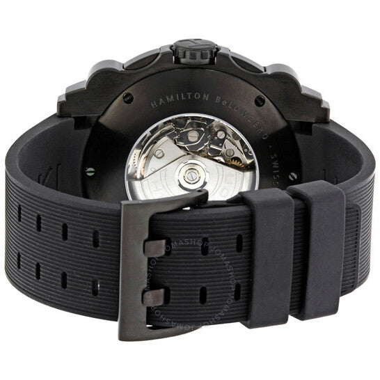 علبة من الفولاذ المقاوم للصدأ مطلية باللون الأسود بتقنية PVD مع سوار مطاطي أسود. إطار دوار من الفولاذ المقاوم للصدأ مطلي باللون الأسود بتقنية PVD. ميناء أسود بعقارب مضيئة وعلامات ساعات بأرقام عربية. علامات دقائق حول الحافة الخارجية. نوع الميناء: تناظري. عقارب وعلامات ميناء مضيئة. عرض اليوم والتاريخ عند موضع الساعة الثالثة. كرونوغراف - ثلاثة أقراص فرعية تعرض: 60 ثانية، 30 دقيقة، و12 ساعة. حركة أوتوماتيكية ETA-Valjoux Caliber 7750، تحتوي على 25 جوهرة، تنبض بمعدل 28800 ذبذبة في الساعة، ولديها احتياطي طاقة لمدة 44 ساعة تقريبًا. زجاج ياقوت مقاوم للخدش. ظهر هيكلي. شكل دائري، حجم العلبة: 46 مم، سمكها: 16 مم. عرض السوار: 23.5 مم، طوله: 8.5 بوصة. مشبك تانغ. مقاومة للماء حتى عمق 100 متر / 330 قدمًا. الوظائف: الساعات/الدقائق/الثواني/التاريخ/الكرونوغراف. سلسلة كاكي البحرية. طراز ساعة رياضية. علامة الساعة: صناعة سويسرية. رقم الموديل: H78686333. ساعة هاميلتون كاكي بيلو زيرو للرجال H78686333.