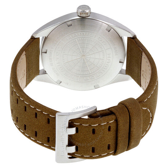 علبة من الفولاذ المقاوم للصدأ مع حزام من جلد الغزال بلون بني فاتح. إطار ثابت من الفولاذ المقاوم للصدأ. ميناء أسود بعقارب فضية مضيئة وعلامات ساعات رقمية عربية. علامات ٢٤ ساعة. علامات دقائق حول الحافة الخارجية. نوع الميناء: تناظري. عقارب وعلامات مضيئة. عرض التاريخ عند موضع الساعة الثالثة. حركة كوارتز. كريستال ياقوتي مقاوم للخدش. غطاء خلفي صلب. قطر العلبة: ٤٠ مم. سُمكها: ٩.٦ مم. شكلها دائري. عرض السوار: ٢٠ مم. مشبك تانغ. مقاومة للماء حتى عمق ٥٠ مترًا / ١٦٥ قدمًا. الوظائف: التاريخ، الساعة، الدقيقة، الثانية. تصميم كاجوال. علامة الساعة: صناعة سويسرية. ساعة هاميلتون كاكي سوداء بحزام من جلد الغزال للرجال، H68551833.