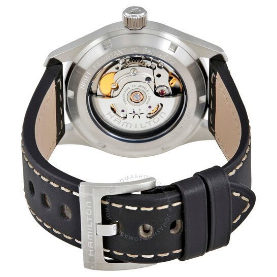 علبة من الفولاذ المقاوم للصدأ مع سوار جلدي أسود. إطار ثابت من الفولاذ المقاوم للصدأ. ميناء أسود بعقارب فضية مضيئة وعلامات ساعات رقمية عربية. علامات ٢٤ ساعة. علامات دقائق رقمية عربية (بفاصل ٥ دقائق). علامات دقائق حول الحافة الخارجية. نوع الميناء: تناظري. عقارب وعلامات ميناء مضيئة. عرض التاريخ عند موضع الساعة ٣. حركة أوتوماتيكية من عيار هاميلتون H-10، مبنية على ETA C07.111، تحتوي على ٢٥ جوهرة، تنبض بتردد ٢١٦٠٠ ذبذبة في الساعة، ولديها احتياطي طاقة يقارب ٨٠ ساعة. زجاج من الياقوت المقاوم للخدش. تاج قابل للسحب/الدفع. ظهر هيكلي. شكل دائري. حجم الهيكل: ٣٨ مم. سمك الهيكل: ١١ مم. عرض السوار: ٢٠ مم. طول السوار: ٨.٥ بوصة. مشبك تانغ. مقاومة للماء حتى عمق ١٠٠ متر / ٣٣٠ قدمًا. الوظائف: التاريخ، الساعة، الدقائق، الثواني. سلسلة كاكي. ساعة كاجوال. علامة الساعة: صناعة سويسرية. رقم الموديل: H70455733. ساعة هاميلتون كاكي فيلد أوتوماتيكية للرجال H70455733.
