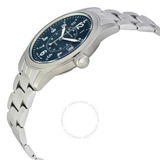 علبة من الفولاذ المقاوم للصدأ مع سوار من الفولاذ المقاوم للصدأ. إطار ثابت من الفولاذ المقاوم للصدأ. ميناء أزرق مع عقارب فضية اللون وعلامات ساعات بأرقام عربية. علامات ٢٤ ساعة وعلامات دقائق حول الحافة الخارجية. نوع الميناء: تناظري. عقارب وعلامات مضيئة. عرض التاريخ عند موضع الساعة ٣. حركة كوارتز ETA عيار F06.111. زجاج ياقوتي مقاوم للخدش. غطاء خلفي صلب. حجم العلبة: ٣٨ مم. سُمكها: ٩ مم. شكلها دائري. عرض السوار: ٢٠ مم. مشبك قابل للطي. مقاومة للماء حتى عمق ١٠٠ متر / ٣٣٠ قدمًا. الوظائف: التاريخ، الساعة، الدقيقة، الثانية، ٢٤ ساعة. طراز ساعة رسمية. علامة الساعة: صناعة سويسرية. ساعة هاميلتون كاكي فيلد زرقاء للرجال H68201143.