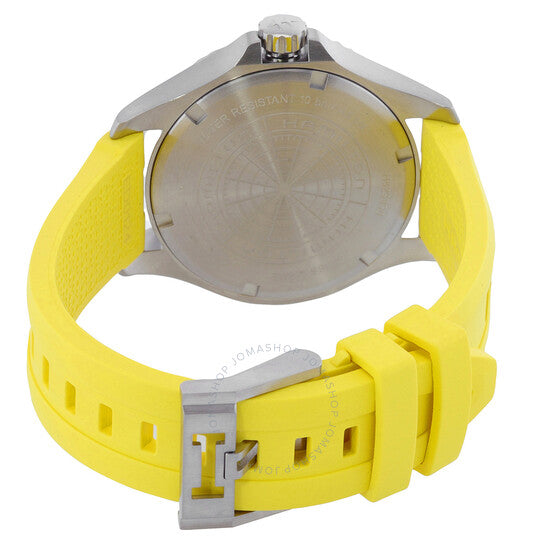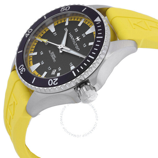 علبة فضية اللون من الفولاذ المقاوم للصدأ مع سوار مطاطي أصفر. إطار دوار أحادي الاتجاه من السيراميك الأسود. ميناء أسود بعقارب فضية اللون وعلامات ساعات. علامات دقائق حول الحافة الخارجية. نوع الميناء: تناظري. عقارب وعلامات مضيئة. عرض التاريخ بين موضعي الساعة الرابعة والخامسة. حركة هاميلتون كاليبر H-10 أوتوماتيكية، مبنية على ETA C07.111، تحتوي على 25 جوهرة، تنبض بمعدل 21600 ذبذبة في الساعة، ولديها احتياطي طاقة يقارب 80 ساعة. زجاج من الياقوت المقاوم للخدش. تاج لولبي. غطاء خلفي صلب. شكل العلبة دائري، مقاسها: 40 مم، سمكها: 12.95 مم. عرض السوار: 20 مم. مشبك بإبزيم. مقاومة للماء حتى عمق 100 متر / 330 قدمًا. الوظائف: التاريخ، الساعة، الدقائق، الثواني. سلسلة كاكي نيفي. طراز الساعة الرياضية. علامة الساعة: صناعة سويسرية. ساعة هاميلتون كاكي البحرية الأوتوماتيكية للرجال بمينا أسود H82395332.