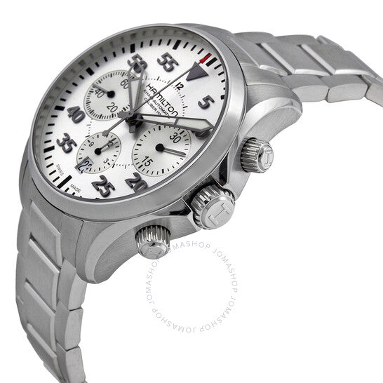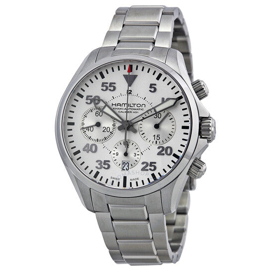 علبة من الفولاذ المقاوم للصدأ مع سوار من الفولاذ المقاوم للصدأ. إطار ثابت من الفولاذ المقاوم للصدأ. ميناء فضي بعقارب مضيئة وعلامات ساعات. علامات دقائق بأرقام عربية (بفاصل ٥ دقائق). علامات دقائق حول الحافة الخارجية. نوع الميناء: تناظري. عقارب وعلامات مضيئة. عرض التاريخ فوق موضع الساعة السادسة. كرونوغراف - ثلاثة أقراص فرعية تعرض: ٦٠ ثانية، ٣٠ دقيقة، و١٢ ساعة. حركة هاميلتون أوتوماتيكية من عيار H-31، مبنية على ETA 7753، تحتوي على ٢٧ جوهرة، تنبض بتردد ٢٨٨٠٠ ذبذبة في الساعة، ولديها احتياطي طاقة لمدة ٦٠ ساعة تقريبًا. زجاج ياقوت مقاوم للخدش. تاج لولبي. غطاء خلفي شفاف. شكل دائري. حجم الهيكل: ٤٢ مم. سمك الهيكل: ١٥ مم. عرض السوار: ٢٠ مم. طول السوار: ٨.٥ بوصة. مشبك قابل للطي. مقاومة للماء حتى عمق ٢٠٠ متر / ٦٦٠ قدمًا. الوظائف: كرونوغراف، تاريخ، ساعات، دقائق، ثوانٍ. سلسلة كاكي بايلوت. طراز ساعة بايلوت. علامة الساعة: صناعة سويسرية. ساعة هاميلتون كاكي بايلوت أوتوماتيكية كرونوغراف للرجال H64666155.