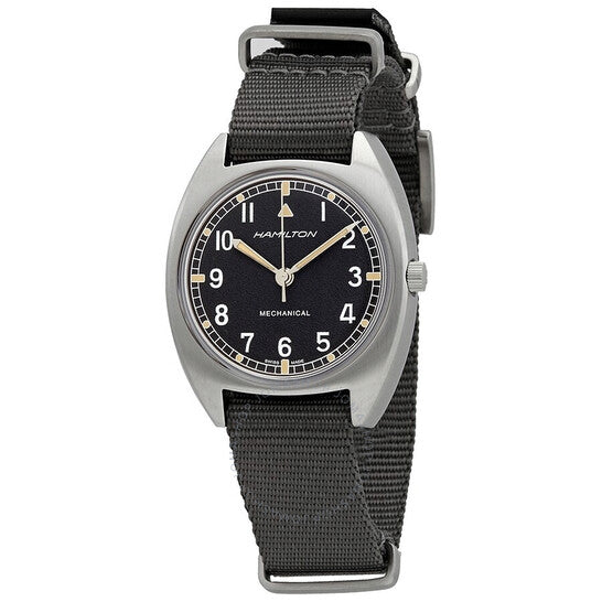 علبة فضية اللون من الفولاذ المقاوم للصدأ مع سوار من النايلون الناتو. إطار ثابت فضي اللون من الفولاذ المقاوم للصدأ. ميناء أسود بعقارب فضية اللون مضيئة على شكل سيف وعلامات ساعات عربية. علامات دقائق حول الحافة الخارجية. نوع الميناء: تناظري. عقارب وعلامات مضيئة. آلية حركة هاميلتون كاليبر H-50 يدوية التعبئة، مبنية على ETA 2801-2، تحتوي على 17 جوهرة، تنبض بتردد 21600 ذبذبة في الساعة، ولديها احتياطي طاقة يدوم حوالي 80 ساعة. زجاج معدني مقاوم للخدش. تاج قابل للسحب/الدفع. غطاء خلفي صلب. شكل دائري، مقاس العلبة: 36 مم × 33 مم، سمك العلبة: 9.95 مم. عرض السوار: 18 مم. مشبك تانغ. مقاومة للماء حتى عمق 100 متر / 330 قدمًا. الوظائف: الساعات، الدقائق، الثواني. سلسلة كاكي بايلوت بايونير. تصميم كاجوال. علامة الساعة: صناعة سويسرية. ساعة هاميلتون كاكي بايلوت بايونير للرجال H76419931.
