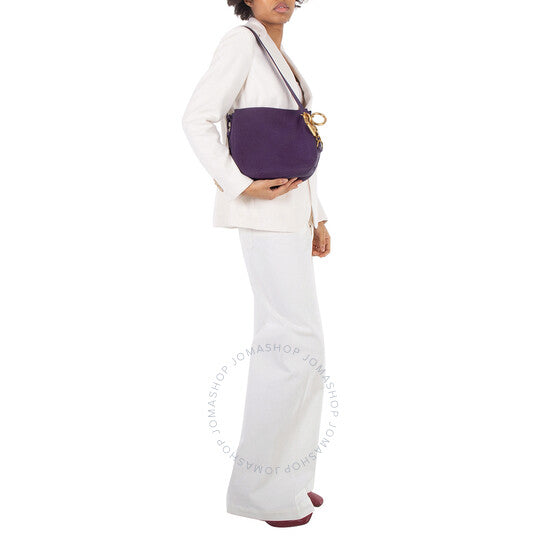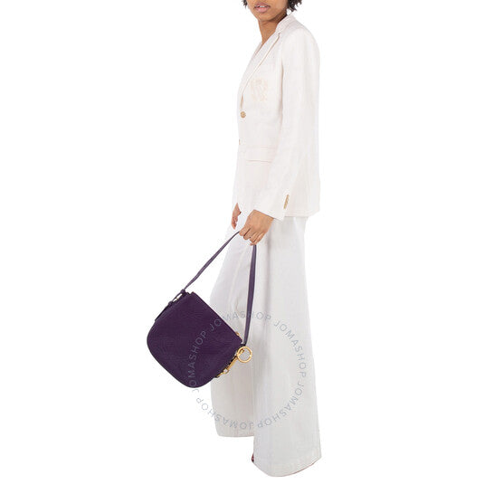 حقيبة كتف بربري النسائية. رمز المنتج: 8077630. اللون: بنفسجي. المقاس: العرض 34.5 سم × الارتفاع 23 سم × العمق 8.5 سم. حقيبة كتف بربري نايت الجلدية الصغيرة. هذه الحقيبة مصنوعة من جلد العجل والشمواه، وتتميز بأجزاء معدنية ذهبية اللون، وسحاب علوي، وحزام كتف قابل للتعديل، وجيب رئيسي. البطانة: شمواه 100%، والجزء الخارجي: جلد عجل 100%. صنع في إيطاليا.