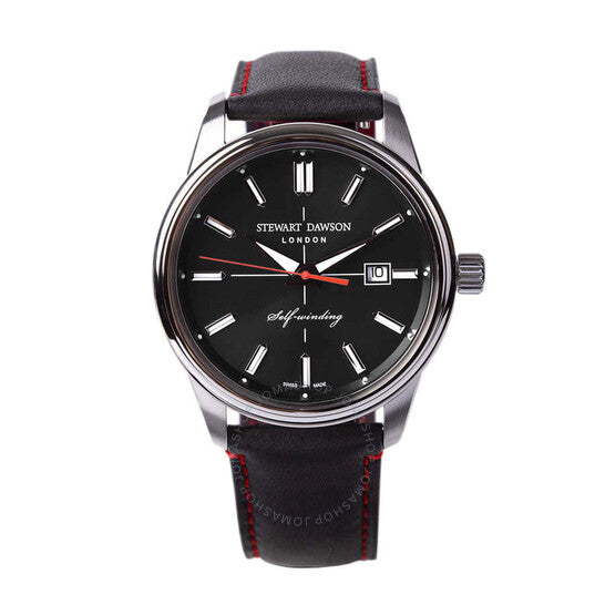 علبة من الفولاذ المقاوم للصدأ فضية اللون مع سوار جلدي أسود. إطار ثابت من الفولاذ المقاوم للصدأ فضي اللون. ميناء أسود بعقارب وعلامات ساعات فضية اللون. علامات دقائق حول الحافة الخارجية. نوع الميناء: تناظري. عقارب وعلامات مضيئة. عرض التاريخ عند موضع الساعة 3. حركة أوتوماتيكية BGW9. كريستال ياقوتي مقاوم للخدش. غطاء خلفي صلب. شكل العلبة دائري، مقاسها: 42.5 مم، سمكها: 12 مم. عرض السوار: 22 مم. مشبك بإبزيم. مقاومة للماء حتى عمق 100 متر / 330 قدمًا. الوظائف: التاريخ، الساعة، الدقائق، الثانية. سلسلة نايتسبريدج. تصميم ساعة كاجوال. علامة الساعة: صناعة سويسرية. ساعة ستيوارت داوسون نايتسبريدج أوتوماتيكية للرجال بمينا أسود 1879.A.SS.01.