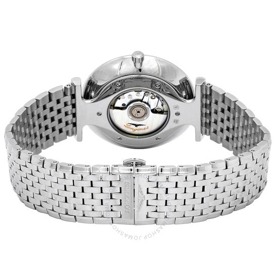 علبة وسوار من الفولاذ المقاوم للصدأ فضي اللون. إطار ثابت من الفولاذ المقاوم للصدأ فضي اللون. ميناء أزرق بعقارب فضية اللون وعلامات ساعات بأرقام رومانية. نوع الميناء: تناظري. حركة لونجين كاليبر L591 أوتوماتيكية، مبنية على ETA A20.L01، تحتوي على 22 جوهرة، تنبض بمعدل 28800 ذبذبة في الساعة، ولديها احتياطي طاقة لمدة 40 ساعة تقريبًا. زجاج ياقوتي مقاوم للخدش. غطاء خلفي شفاف. شكل العلبة دائري، مقاسها 38 مم. مشبك قابل للطي. مقاومة للماء حتى عمق 30 مترًا / 100 قدم. الوظائف: الساعات، الدقائق. معلومات إضافية: العلبة الأصلية، بطاقة الضمان الدولية، دليل الاستخدام (ملحقات كاملة). سلسلة لا غراندي. تصميم ساعة فاخرة. ملصق الساعة: صناعة سويسرية. ساعة لونجين لا غراندي أوتوماتيكية للرجال بمينا أزرق L4.918.4.94.6.