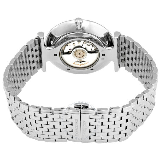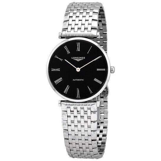 علبة من الفولاذ المقاوم للصدأ مع سوار من الفولاذ المقاوم للصدأ. إطار ثابت من الفولاذ المقاوم للصدأ. ميناء أسود بنقشة أشعة الشمس مع عقارب فضية اللون وعلامات ساعات بأرقام رومانية. نوع الميناء: تناظري. حركة لونجين الأوتوماتيكية عيار L591، مبنية على ETA A20.L01، تحتوي على 22 جوهرة، تنبض بمعدل 28800 ذبذبة في الساعة، ولديها احتياطي طاقة يقارب 40 ساعة. زجاج من الياقوت المقاوم للخدش. تاج قابل للسحب/الدفع. غطاء خلفي صلب. شكل دائري. حجم العلبة: 36 مم. مشبك قابل للطي بزر ضغط. مقاومة للماء حتى عمق 30 مترًا / 100 قدم. الوظائف: الساعات، الدقائق. سلسلة لا غراند كلاسيك. طراز ساعة رسمية. علامة الساعة: صناعة سويسرية. ساعة لونجين لا غراند كلاسيك الأوتوماتيكية للرجال L49084516.