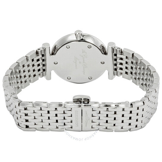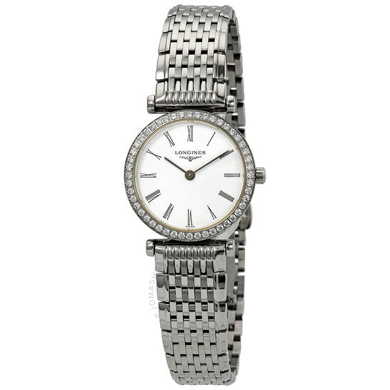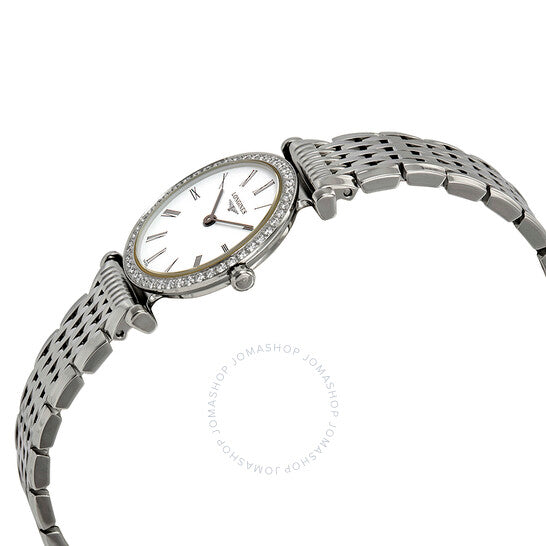 علبة من الفولاذ المقاوم للصدأ مع سوار من الفولاذ المقاوم للصدأ. إطار ثابت من الفولاذ المقاوم للصدأ مرصع بـ 48 ماسة (0.48 قيراط). ميناء أبيض بعقارب سوداء وعلامات ساعات رومانية. نوع الميناء: تناظري. حركة كوارتز من لونجين عيار L209. زجاج ياقوت مقاوم للخدش. غطاء خلفي صلب. شكل دائري. حجم العلبة: 24 مم. سمكها: 5 مم. عرض السوار: 13 مم. مشبك قابل للطي بزر ضغط. مقاومة للماء حتى عمق 30 مترًا / 100 قدم. الوظائف: الساعات، الدقائق. طراز ساعة رسمية. علامة الساعة: صناعة سويسرية. إصدارات المنتج: L4 241 0 11 6، L4-241-0-11-6، L4/241/0/11/6، L42410116. ساعة لونجين لا غراند كلاسيك الماسية للسيدات L4.241.0.11.6.