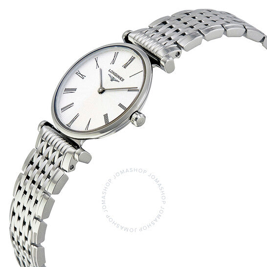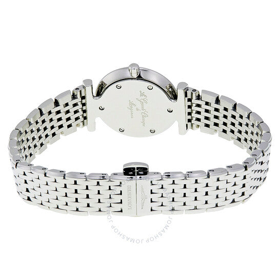 علبة وسوار من الفولاذ المقاوم للصدأ فضي اللون. إطار ثابت من الفولاذ المقاوم للصدأ فضي اللون. ميناء فضي "فلينك" مع عقارب سوداء وعلامات ساعات بأرقام رومانية. نوع الميناء: تناظري. حركة كوارتز لونجين كاليبر L209. زجاج ياقوت مقاوم للخدش. تاج قابل للسحب/الدفع. غطاء خلفي صلب. شكل العلبة دائري، مقاسها: 24 مم، سمكها: 4.3 مم. عرض السوار: 13 مم. مشبك قابل للطي بزر ضغط. مقاومة للماء حتى عمق 30 مترًا / 100 قدم. الوظائف: الساعات، الدقائق. سلسلة لا غراند كلاسيك. تصميم ساعة كاجوال. علامة الساعة: سويسرية. إصدارات المنتج: L4 209 4 71 6، L4-209-4-71-6، L4/209/4/71/6، L42094716. ساعة لونجين لا غراند كلاسيك النسائية L4.209.4.71.6.