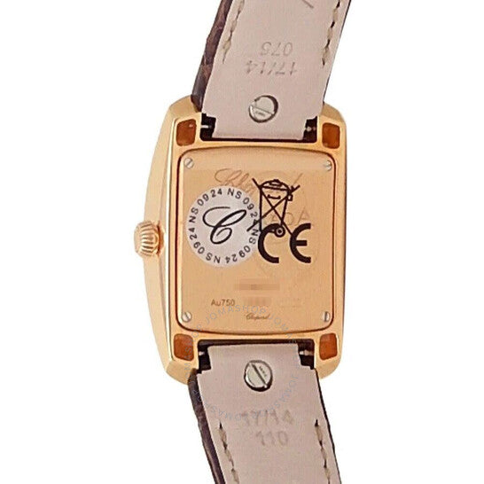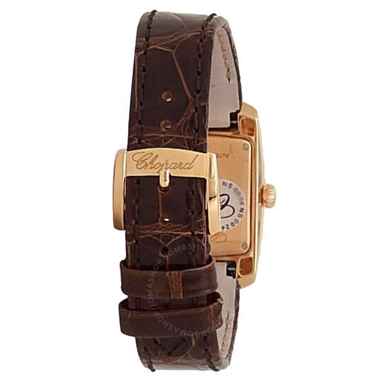 علبة من الذهب الوردي عيار 18 قيراطًا، بلون الذهب الوردي، مع سوار من الجلد الأصلي البني. إطار ثابت من الذهب الوردي عيار 18 قيراطًا. ميناء أبيض مع عقارب بلون الذهب الوردي وعلامات ساعات بأرقام رومانية. علامات دقائق حول الحافة الخارجية. نوع الميناء: تناظري. حركة كوارتز. زجاج ياقوتي مقاوم للخدش. غطاء خلفي صلب. شكل فريد للعلبة، مقاسها: 26 مم. مشبك بإبزيم. الوظائف: ساعة، دقيقة. سلسلة لا سترادا. طراز ساعة رسمية. علامة الساعة: صناعة سويسرية. ساعة شوبارد لا سترادا كوارتز نسائية بمينا بيضاء، رقمها 419255-5001.