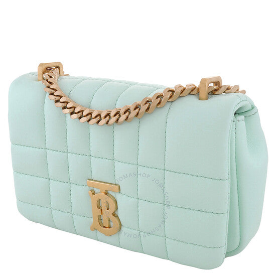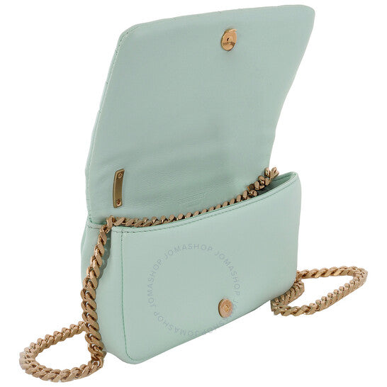 حقيبة كتف نسائية من بربري. رمز المنتج: 8070497. اللون: أخضر فاتح. المقاس: 17 × 3.5 × 10 سم/6.7 × 1.4 × 3.9 بوصة. حقيبة كتف نسائية مبطنة بشعار بربري. تتميز بتصميم مبطن، ولوحة شعار بربري المميزة، وأجزاء معدنية ذهبية اللون، وقفل أمامي بقلاب، وجيب داخلي بسحاب، وحزام كتف قابل للتعديل بحلقات معدنية، وقفل مغناطيسي مخفي. مصنوعة من جلد الحمل 100%. صنع في إيطاليا.
