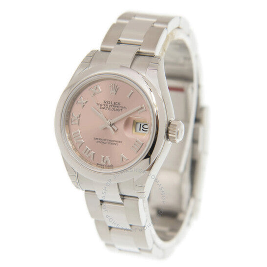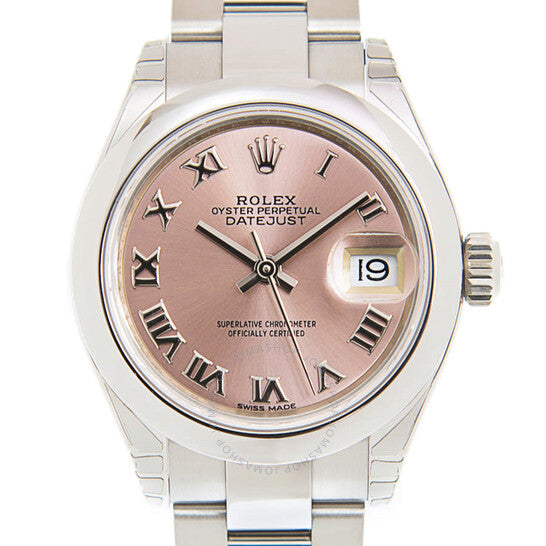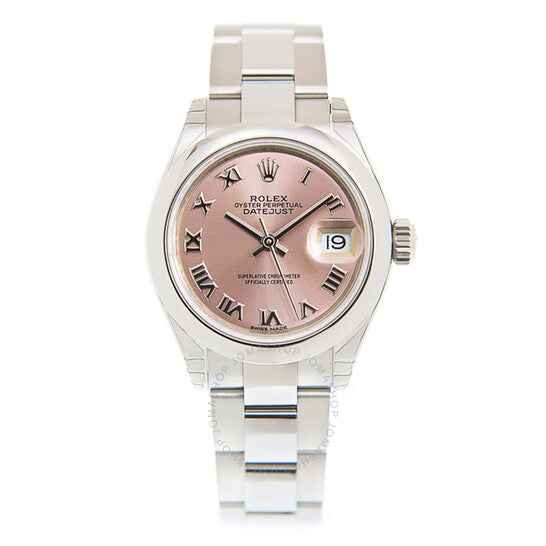 علبة من الفولاذ المقاوم للصدأ فضية اللون مع سوار رولكس أويستر فضي اللون. إطار ثابت مقبب من الفولاذ المقاوم للصدأ فضي اللون. ميناء وردي اللون مع عقارب فضية اللون وعلامات ساعات بأرقام رومانية. نوع الميناء: تناظري. عرض التاريخ عند موضع الساعة 3. حركة رولكس أوتوماتيكية كاليبر 2236 مع احتياطي طاقة لمدة 55 ساعة. كريستال ياقوت مقاوم للخدش. تاج لولبي. غطاء خلفي صلب. شكل دائري. حجم العلبة: 28 مم. قابلة للطي مع مشبك أمان. مقاومة للماء حتى عمق 100 متر / 330 قدمًا. الوظائف: التاريخ، الساعة، الدقائق، الثواني. تصميم ساعة فاخرة. علامة الساعة: صناعة سويسرية. ساعة رولكس ليدي ديت جست أويستر نسائية أوتوماتيكية بمينا وردي، 279160PRO.