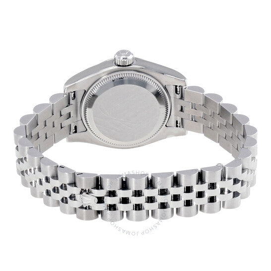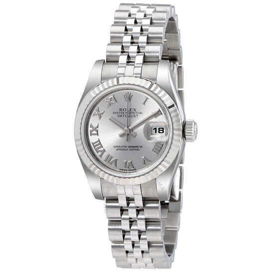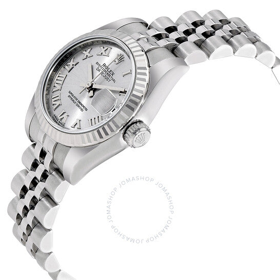 علبة من الفولاذ المقاوم للصدأ مع سوار رولكس جوبيلي من الفولاذ المقاوم للصدأ. إطار مُخدّد من الذهب الأبيض عيار 18 قيراطًا. ميناء من الروديوم بعقارب فضية اللون وعلامات ساعات بأرقام رومانية. نوع الميناء: تناظري. عرض التاريخ عند موضع الساعة 3. حركة أوتوماتيكية من رولكس عيار 2235 مع احتياطي طاقة لمدة 48 ساعة. زجاج من الياقوت المقاوم للخدش. تاج لولبي. حجم العلبة: 26 مم. شكل العلبة دائري. مشبك تاج مخفي. مقاومة للماء حتى عمق 100 متر / 330 قدمًا. الوظائف: الساعات، الدقائق، الثواني، التاريخ. تصميم ساعة فاخرة. ساعة رولكس ليدي ديت جست بمينا روديوم وفولاذ مقاوم للصدأ، رقم 179174RRJ.
