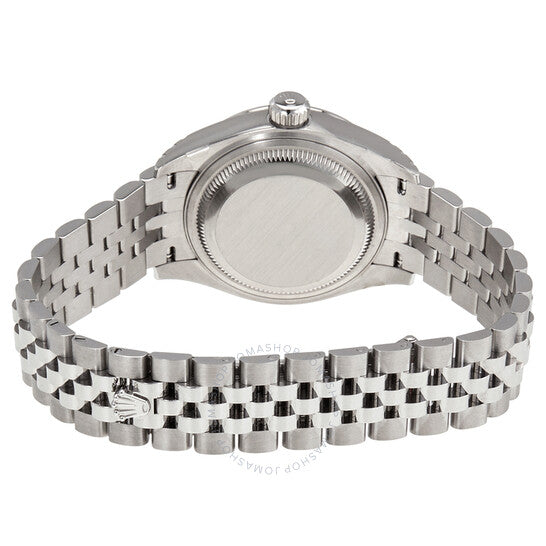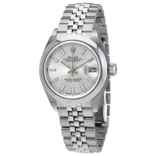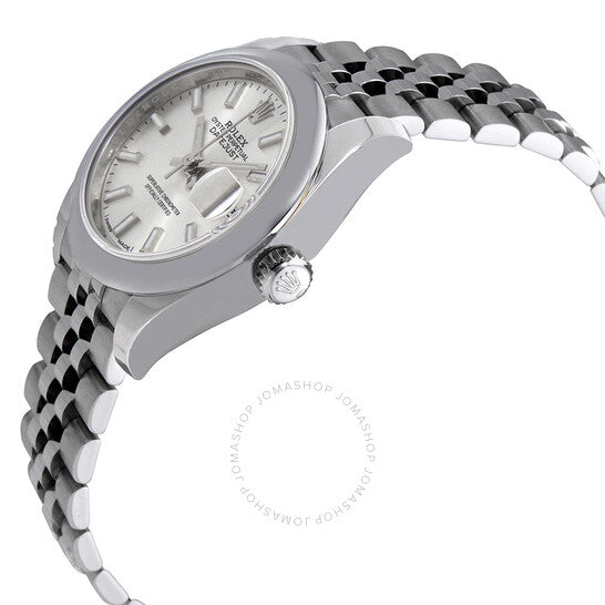 علبة من الفولاذ المقاوم للصدأ مع سوار رولكس جوبيلي من الفولاذ المقاوم للصدأ. إطار ثابت مقبب من الفولاذ المقاوم للصدأ. ميناء فضي مع عقارب ومؤشرات ساعات فضية مضيئة. مؤشرات دقائق حول الحافة الخارجية. نوع الميناء: تناظري. عقارب ومؤشرات مضيئة. عرض التاريخ عند موضع الساعة 3. حركة رولكس أوتوماتيكية عيار 2236، مستوحاة من رولكس 2235، تحتوي على 31 جوهرة، تنبض بمعدل 28800 ذبذبة في الساعة، ولديها احتياطي طاقة يصل إلى حوالي 55 ساعة. كريستال ياقوت مقاوم للخدش. تاج لولبي. غطاء خلفي صلب. شكل دائري. حجم العلبة: 28 مم. مشبك قابل للطي. مقاومة للماء حتى عمق 100 متر / 330 قدم. الوظائف: التاريخ، الساعة، الدقائق، الثواني. سلسلة ليدي ديت جست 28. تصميم ساعة فاخرة. علامة الساعة: صناعة سويسرية. ساعة رولكس ليدي ديت جست أوتوماتيكية نسائية جوبيلي بمينا فضي 279160SSJ.