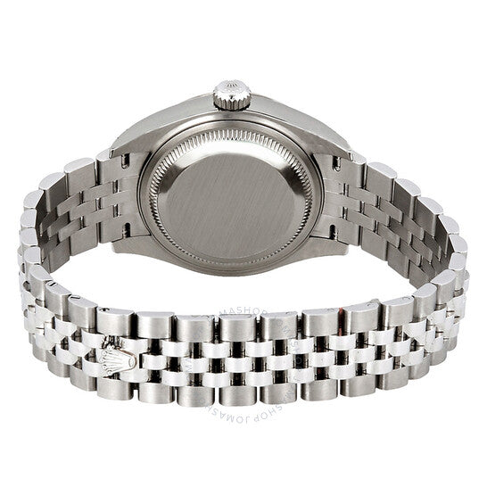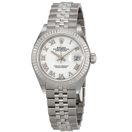 علبة من الفولاذ المقاوم للصدأ مع سوار رولكس جوبيلي من الفولاذ المقاوم للصدأ. إطار ثابت مُخدّد من الفولاذ المقاوم للصدأ. ميناء أبيض بعقارب فضية اللون وعلامات ساعات بأرقام رومانية. نوع الميناء: تناظري. عرض التاريخ عند موضع الساعة الثالثة. حركة رولكس أوتوماتيكية من عيار 2236، مستوحاة من رولكس 2235، تحتوي على 31 جوهرة، تنبض بمعدل 28800 ذبذبة في الساعة، ولديها احتياطي طاقة يقارب 55 ساعة. زجاج من الياقوت المقاوم للخدش. تاج لولبي. غطاء خلفي صلب. شكل دائري. حجم العلبة: 28 مم. مشبك قابل للطي. مقاومة للماء حتى عمق 100 متر / 330 قدم. الوظائف: التاريخ، الساعة، الدقائق، الثواني. سلسلة ليدي ديت جست 28. تصميم ساعة فاخرة. علامة الساعة: صناعة سويسرية. ساعة رولكس ليدي ديت جست بيضاء أوتوماتيكية للسيدات جوبيلي 279174WRJ.