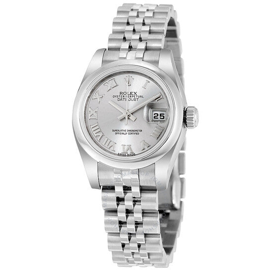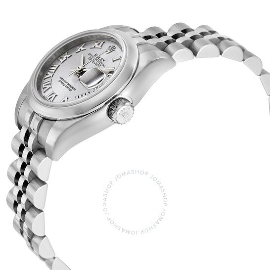 علبة من الفولاذ المقاوم للصدأ مع سوار رولكس جوبيلي من الفولاذ المقاوم للصدأ. إطار ثابت مقبب من الفولاذ المقاوم للصدأ. ميناء من الروديوم بعقارب فضية اللون وعلامات ساعات بأرقام رومانية. نوع الميناء: تناظري. عرض التاريخ عند موضع الساعة 3. حركة أوتوماتيكية من رولكس كاليبر 2235 مع احتياطي طاقة لمدة 48 ساعة. زجاج من الياقوت المقاوم للخدش. تاج لولبي. حجم العلبة: 26 مم. شكل العلبة دائري. مشبك تاج مخفي. مقاومة للماء حتى عمق 100 متر / 330 قدمًا. الوظائف: الساعات، الدقائق، الثواني، التاريخ. طراز ساعة فاخرة. علامة الساعة: صناعة سويسرية. ساعة رولكس ليدي ديت جست جوبيلي أوتوماتيكية بمينا روديوم ورقم 179160RRJ.