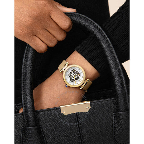ساعة بورسامو بلو لورا النسائية الأوتوماتيكية بهيكل من الفولاذ المقاوم للصدأ وحزام أسود من الجلد الأصلي؛ مع علامات ساعات من التوباز؛ ميناء أبيض هيكلي من عرق اللؤلؤ؛ ذهبي وبيج. هيكل من الفولاذ المقاوم للصدأ بلون الذهب الأصفر مع حزام من الجلد الأصلي بلون البيج. إطار ثابت من الفولاذ المقاوم للصدأ بلون الذهب الأصفر. ميناء أبيض مع عقارب وعلامات ساعات ذهبية صفراء. نوع الميناء: تناظري. حركة أوتوماتيكية من عيار TMI NH70، تحتوي على 24 جوهرة، تنبض بسرعة 21600 ذبذبة في الساعة، ولديها احتياطي طاقة لمدة 41 ساعة تقريبًا. كريستال معدني مقاوم للخدش. تاج سحب/دفع. غطاء خلفي صلب. شكل دائري، حجم العلبة: 36 مم، سمك العلبة: 12 مم. عرض السوار: 18 مم. مشبك بإبزيم. مقاومة للماء حتى عمق 50 مترًا / 165 قدمًا. الوظائف: الساعة والدقيقة والثانية. معلومات إضافية: ميناء رائع من عرق اللؤلؤ مع علامات ساعات من أحجار التوباز الكريمة. سلسلة لورا. نمط ساعة فاخرة. علامة الساعة: ساعة بورسامو بلو لورا أوتوماتيكية بمينا أبيض للسيدات من اليابان، موديل 1212BLAL.