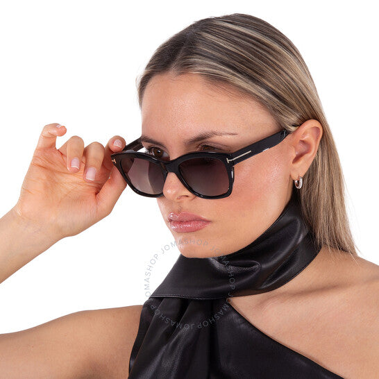 نظارات شمسية من توم فورد. سلسلة لورين. رقم السلسلة: FT0614. رمز اللون: 01H. الشكل: عين القطة. عرض العدسة: 52 مم. جسر العدسة: 19 مم. طول الذراع: 140 مم. حماية 100% من الأشعة فوق البنفسجية. مستقطبة. مادة الإطار: بلاستيك. لون الإطار: أسود لامع. نوع العدسات: بني مستقطب. نمط الحافة: حافة كاملة. رمز UPC/EAN: 664689929405. نظارات شمسية نسائية من توم فورد لورين مستقطبة بنية اللون، عين القطة، FT0614 01H 52.