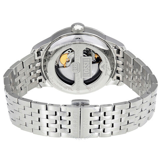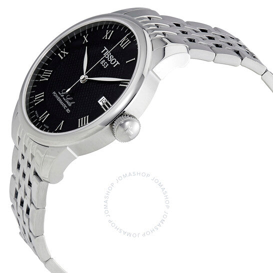 علبة من الفولاذ المقاوم للصدأ مع سوار من الفولاذ المقاوم للصدأ. إطار ثابت من الفولاذ المقاوم للصدأ. ميناء أسود بعقارب فضية اللون على شكل ورقة شجر وعلامات ساعات رومانية. علامات دقائق حول الحافة الخارجية. نوع الميناء: تناظري. عرض التاريخ عند موضع الساعة 3. حركة أوتوماتيكية من عيار Tissot Powermatic 80 (C07.111)، مبنية على ETA 2824-2، تحتوي على 23 جوهرة، تنبض بتردد 21600 ذبذبة في الساعة، ولديها احتياطي طاقة لمدة 80 ساعة تقريبًا. زجاج ياقوت مقاوم للخدش. تاج قابل للسحب/الدفع. غطاء خلفي شفاف. شكل دائري. حجم العلبة: 39.3 مم. سمك العلبة: 10 مم. عرض السوار: 20 مم. طول السوار: 8.5 بوصة. مشبك قابل للطي بزر ضغط. مقاومة للماء حتى عمق 30 مترًا / 100 قدم. الوظائف: التاريخ، الساعة، الدقائق، الثواني. طراز ساعة رسمية. ملصق الساعة: صناعة سويسرية. ساعة تيسو لو لوكل باورماتيك 80 أوتوماتيكية للرجال T006.407.11.053.00.