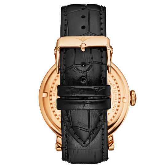 علبة من الذهب الوردي - ميناء فضي - عقارب زرقاء - تاج من الذهب الوردي - سوار أسود. علبة من الفولاذ المقاوم للصدأ بلون الذهب الوردي مع سوار جلدي أسود. إطار ثابت من الفولاذ المقاوم للصدأ بلون الذهب الوردي. ميناء فضي اللون مع عقارب زرقاء وعلامات ساعات بأرقام عربية. علامات دقائق حول الحافة الخارجية. نوع الميناء: تناظري. عقارب مضيئة. حركة أوتوماتيكية. هيكل دائري الشكل، مقاسه: 47 مم. مشبك تانغ. مقاومة للماء حتى عمق 50 مترًا / 165 قدمًا. الوظائف: كرونوغراف، ساعات، دقائق، ثوانٍ. سلسلة ليجاسي. ساعة رسمية. ساعة ستورلينج أوريجينال ليجاسي كرونوغراف أوتوماتيكية للرجال بمينا فضية، طراز M18231.