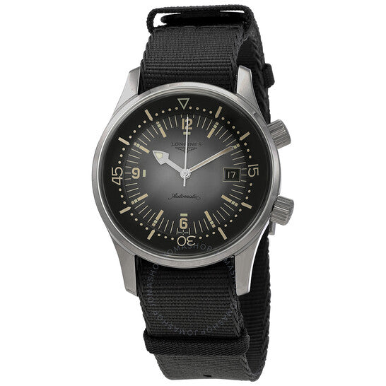 علبة من الفولاذ المقاوم للصدأ فضية اللون مع سوار من النايلون الرمادي. إطار ثابت من الفولاذ المقاوم للصدأ فضي اللون. ميناء رمادي مع عقارب وعلامات ساعات فضية اللون. علامات دقائق حول الحافة الخارجية. نوع الميناء: تناظري. عقارب وعلامات مضيئة. عرض التاريخ عند موضع الساعة 3. حركة لونجين كاليبر L888 أوتوماتيكية، مبنية على ETA A31.L11، تحتوي على 21 جوهرة، تنبض بمعدل 25200 ذبذبة في الساعة، ولديها احتياطي طاقة يدوم حوالي 64 ساعة. زجاج من الياقوت المقاوم للخدش. تاج لولبي. غطاء خلفي صلب. شكل العلبة دائري، مقاسها: 42 مم. مشبك بإبزيم. مقاومة للماء حتى عمق 300 متر / 1000 قدم. الوظائف: التاريخ، الساعة، الدقائق، الثواني. معلومات إضافية: العلبة الأصلية، بطاقة ضمان دولية، دليل الاستخدام (ملحقات كاملة). سلسلة ليجند دايفر. تصميم ساعة فاخرة. ملصق الساعة: صناعة سويسرية. ساعة لونجين ليجند دايفر أوتوماتيكية بمينا رمادي للرجال L3.774.4.70.2.