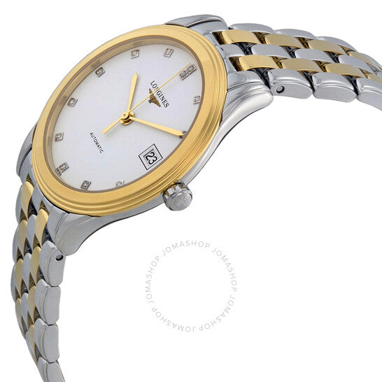 علبة من الفولاذ المقاوم للصدأ بسوار من الفولاذ المقاوم للصدأ ثنائي اللون (فضي وذهب عيار 18 قيراطًا مطلي بتقنية الترسيب الفيزيائي للبخار). إطار ثابت من الذهب عيار 18 قيراطًا مطلي بتقنية الترسيب الفيزيائي للبخار. ميناء أبيض بعقارب ذهبية وعلامات ساعات من الألماس. نوع الميناء: تناظري. عرض التاريخ عند موضع الساعة 3. حركة أوتوماتيكية من عيار لونجين L619 مع احتياطي طاقة لمدة 42 ساعة. زجاج من الياقوت المقاوم للخدش. تاج قابل للسحب/الدفع. غطاء خلفي شفاف. حجم العلبة: 36 مم. سمكها: 7 مم. شكلها دائري. عرض السوار: 20.3 مم. طول السوار: 7 بوصات. مشبك قابل للطي. مقاومة للماء حتى عمق 30 مترًا / 100 قدم. الوظائف: التاريخ، الساعة، الدقائق، الثواني. طراز ساعة رسمية. علامة الساعة: سويسرية. إصدارات المنتج: L4 774 3 27 7، L4-774-3-27-7، L4/774/3/27/7، L47743277. ساعة لونجين ليه جراند الرئيسية الأوتوماتيكية للرجال، مرصعة بالألماس، L4.774.3.27.7.