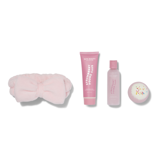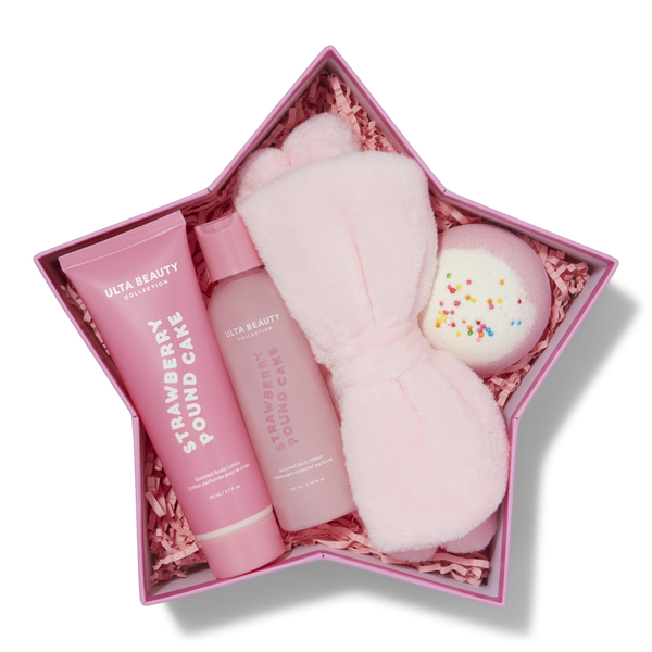 مجموعة الهدايا المثالية لأي مناسبة. استمتعي بمجموعة هدايا "لنحتفل" من مجموعة Ulta Beauty Collection، مع قنبلة استحمام مريحة ومرحة برائحة كعكة الفراولة، وغسول للجسم، ولوشن للجسم، وعصابة رأس وردية مخملية أنيقة.